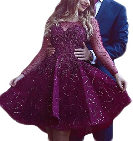 Lejy Women S Long Sleeve Short Prom Dress Lace Homecoming Dress