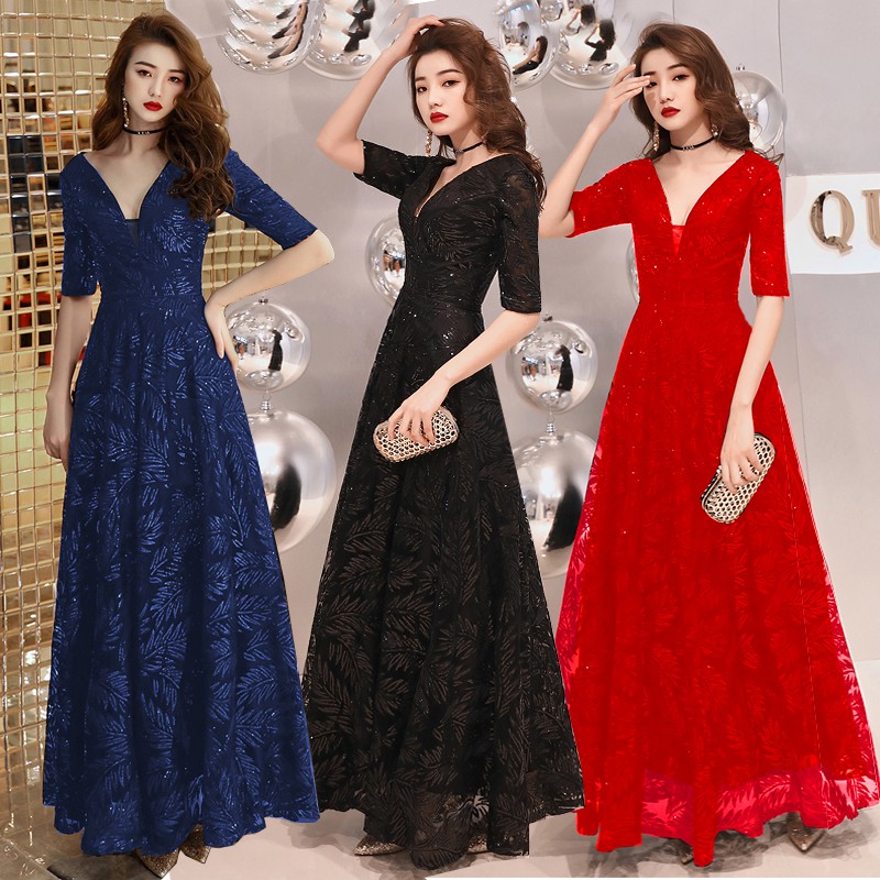 China Gold Sequins Spandex Party Prom Gown Red Blue Wine Black