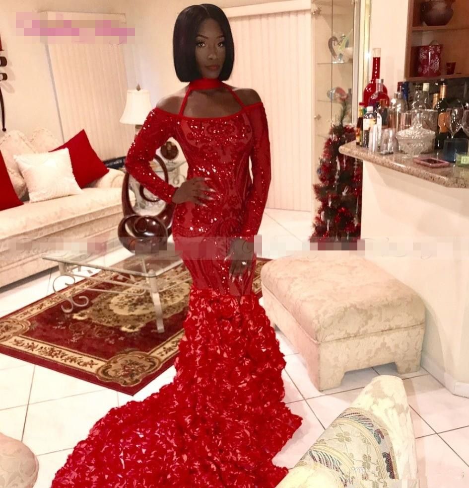 Long Sleeves Prom Dress 2019 Latest African Black Girls Red Carpet
