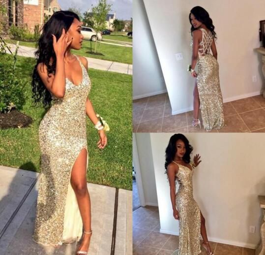 Gold Sequin Prom Dresses Backless Prom Dresses Prom Dresses 2017
