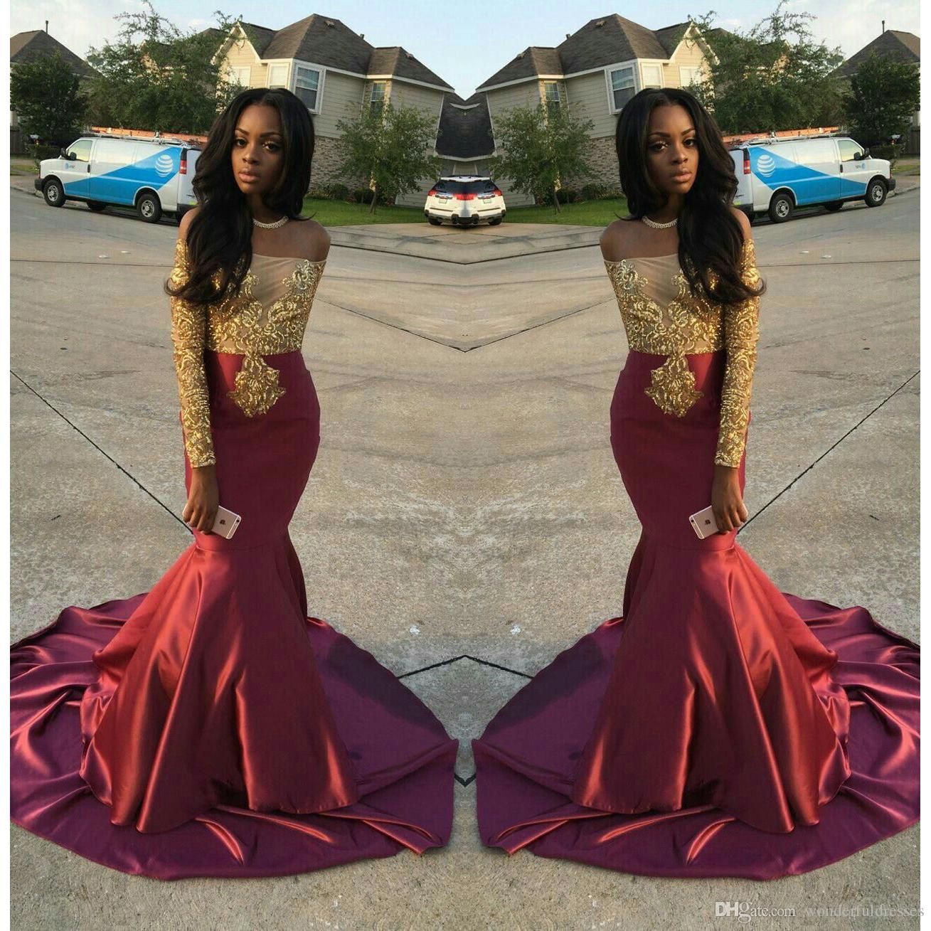 New Designer 2018 Mermaid Gold Prom Dress With Slit Open Back