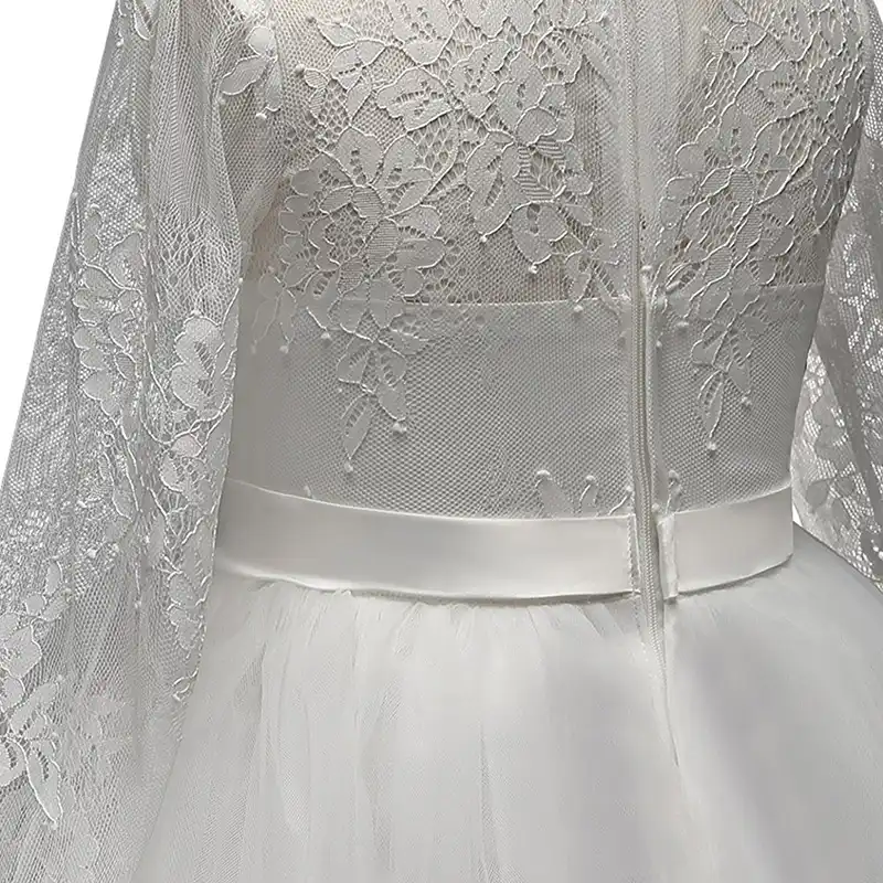 Cute Child Girl Princess Long Sleeve Dress Patchwork Lace Wedding