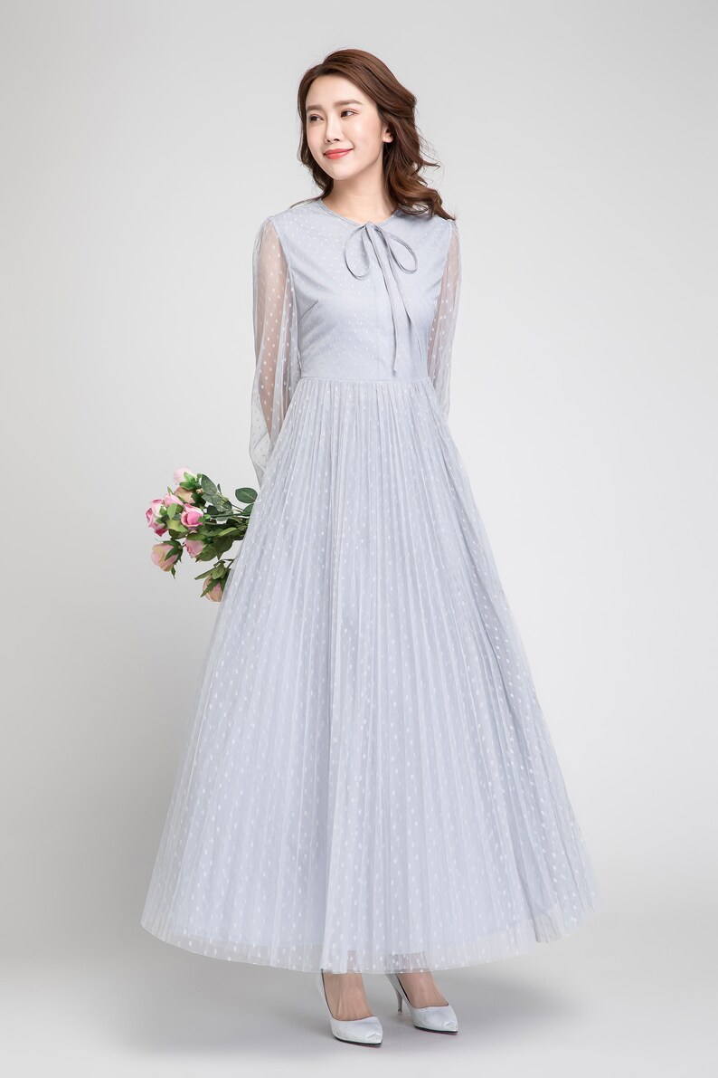 Prom Dress Long Tulle Dress Gray Boho Dress Polka Dot Etsy