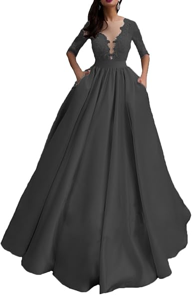 82 Long Sleeve Princess Long Sleeve Grey Prom Dresses