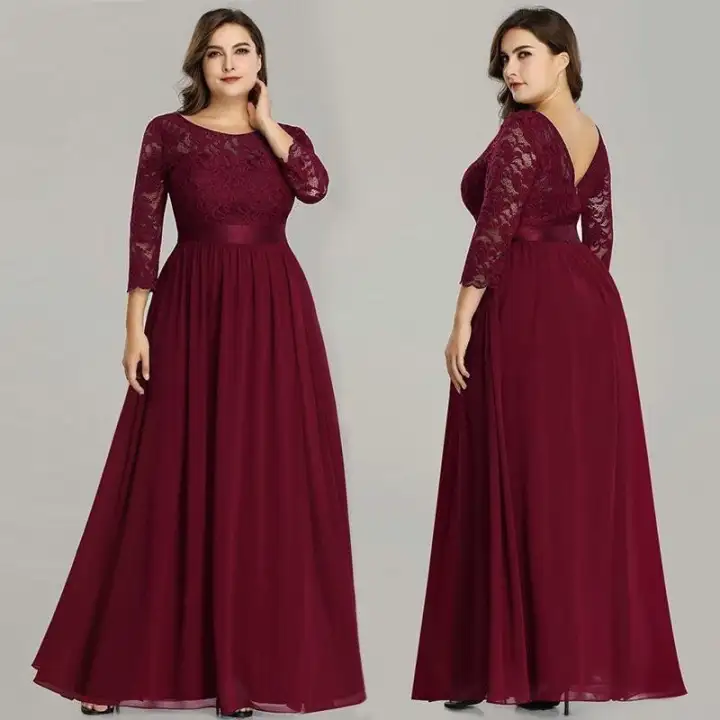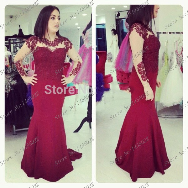 Burgundy Prom Dress Lace Prom Dress Plus Size Prom Long Sleeve