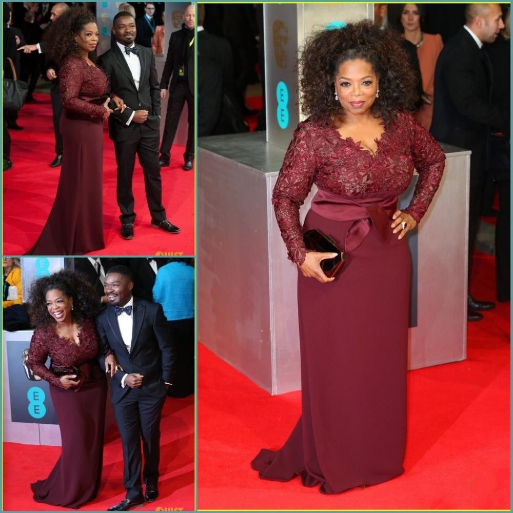 Oprah Winfrey Baftas 2014 Long Sleeve Burgundy Lace Bodice Plus