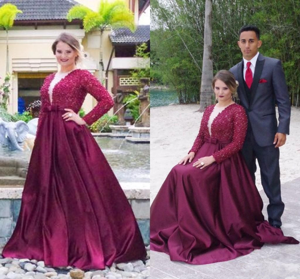 Plus Size Long Sleeve Prom Dresses 2016 Long Elegant Burgundy Prom