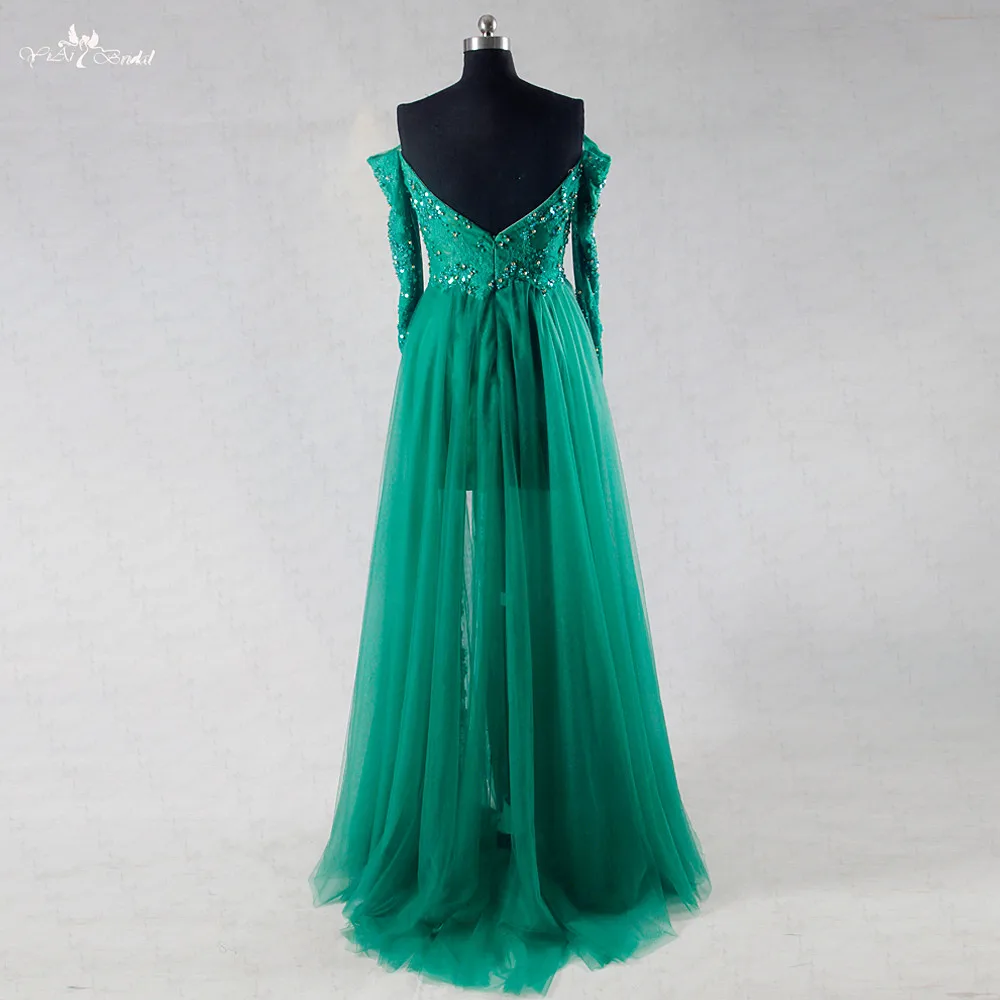 Rse742 Sexy Off The Shoulder Long Sleeve Prom Dresses Emerald
