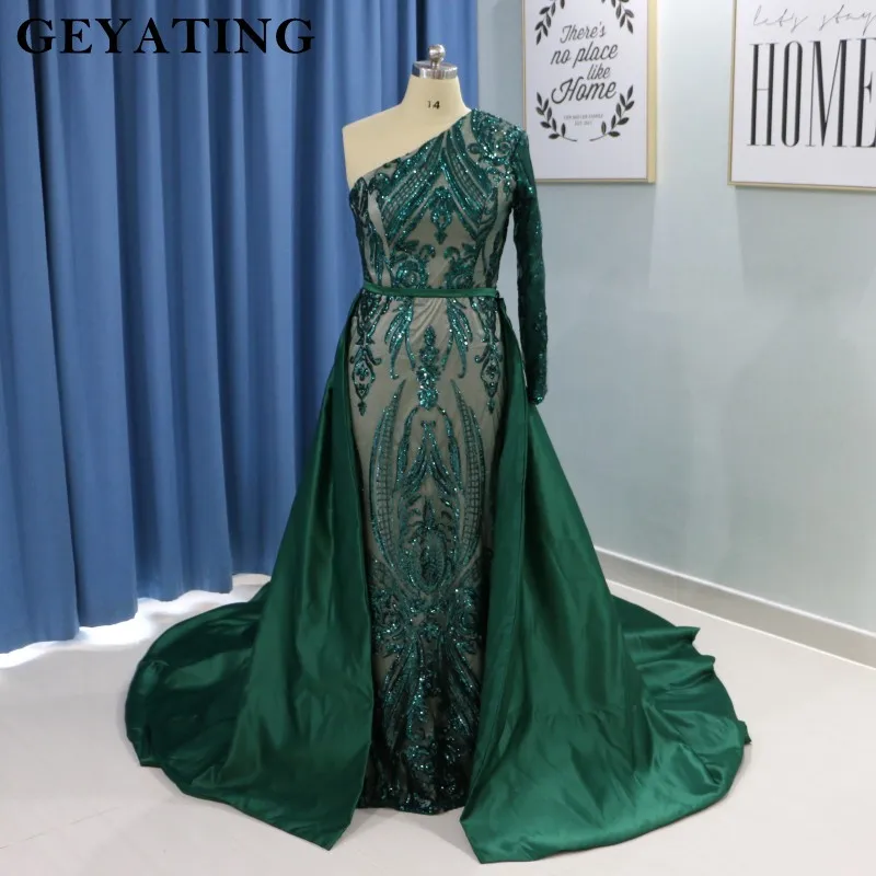 Emerald Green Long Sleeves Mermaid Evening Dresses With Detachable