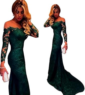 Hot Deal 05d1 Emerald Green Mermaid Evening Dress Long Sleeve