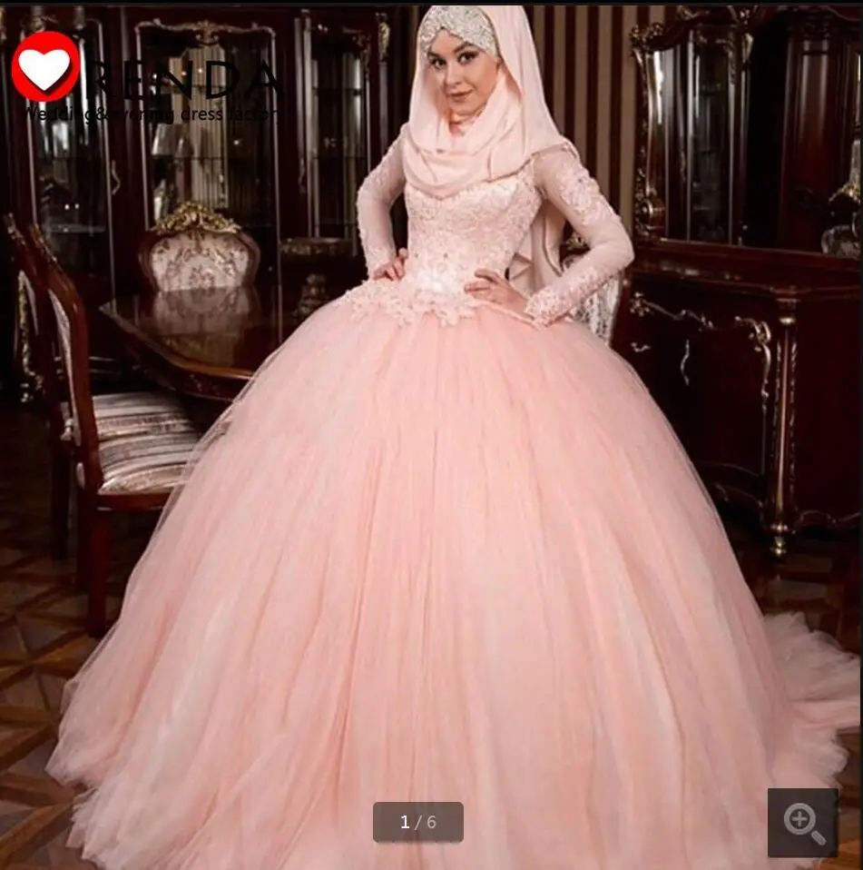 2016 New Design Ball Gown Muslim Prom Dress High Neck Long Sleeve