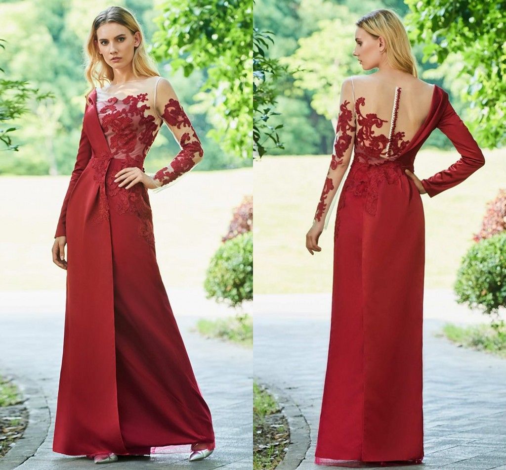 Long Sleeves Lace Dark Red Evening Prom Dresses Cheap Custom