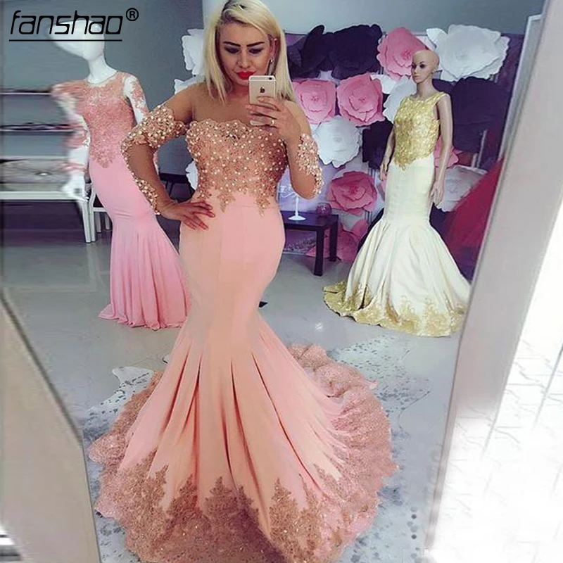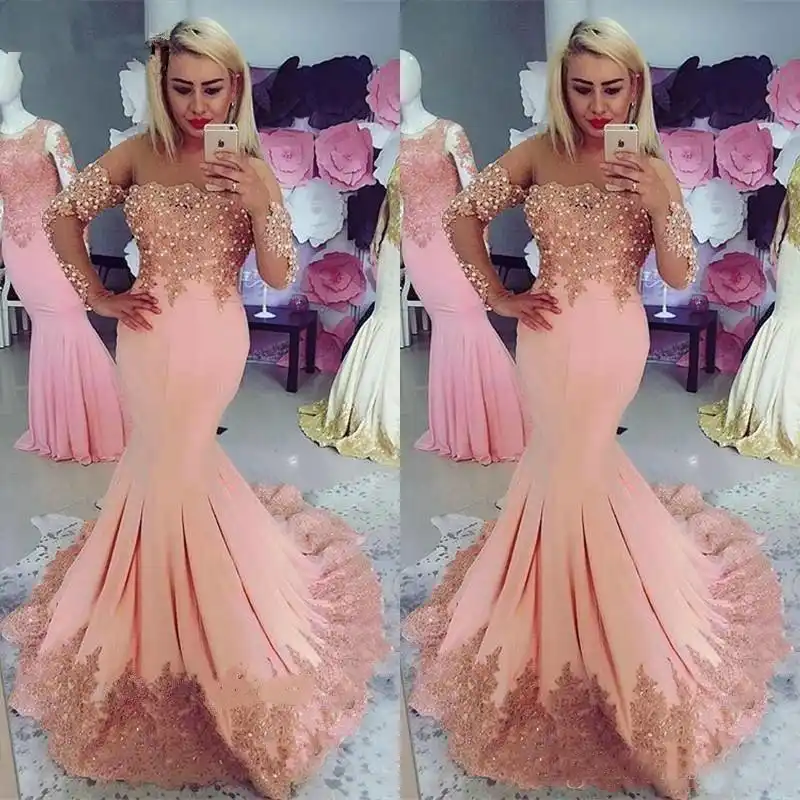 Rose Gold Long Sleeve Mermaid Prom Dress