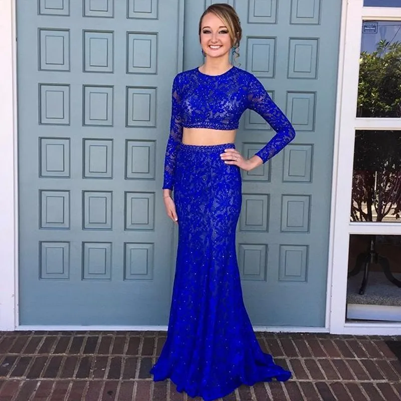 Women S Two Piece Prom Dresses Long Sleeve Lace 2019 Mermaid Royal