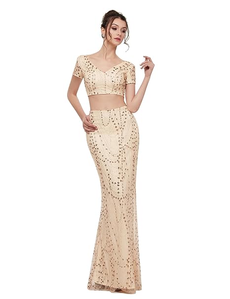 Lanshini Women S Long Mermaid Evening Gowns Sequins Two Piece Prom
