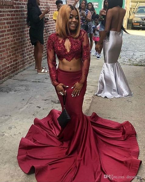 Burgundy Two Piece Prom Dresses 2017 Mermaid Long Sleeves Sexy
