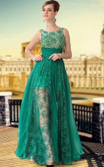 Emerald Green Prom Dresses 2015 Modest Lace Beach Long Evening