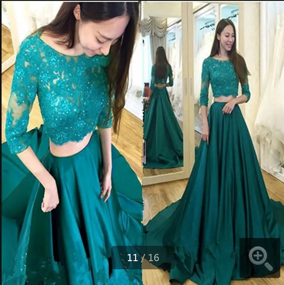 Two Piece Prom Dress Modest Beautiful Vintage Cheap Long Prom