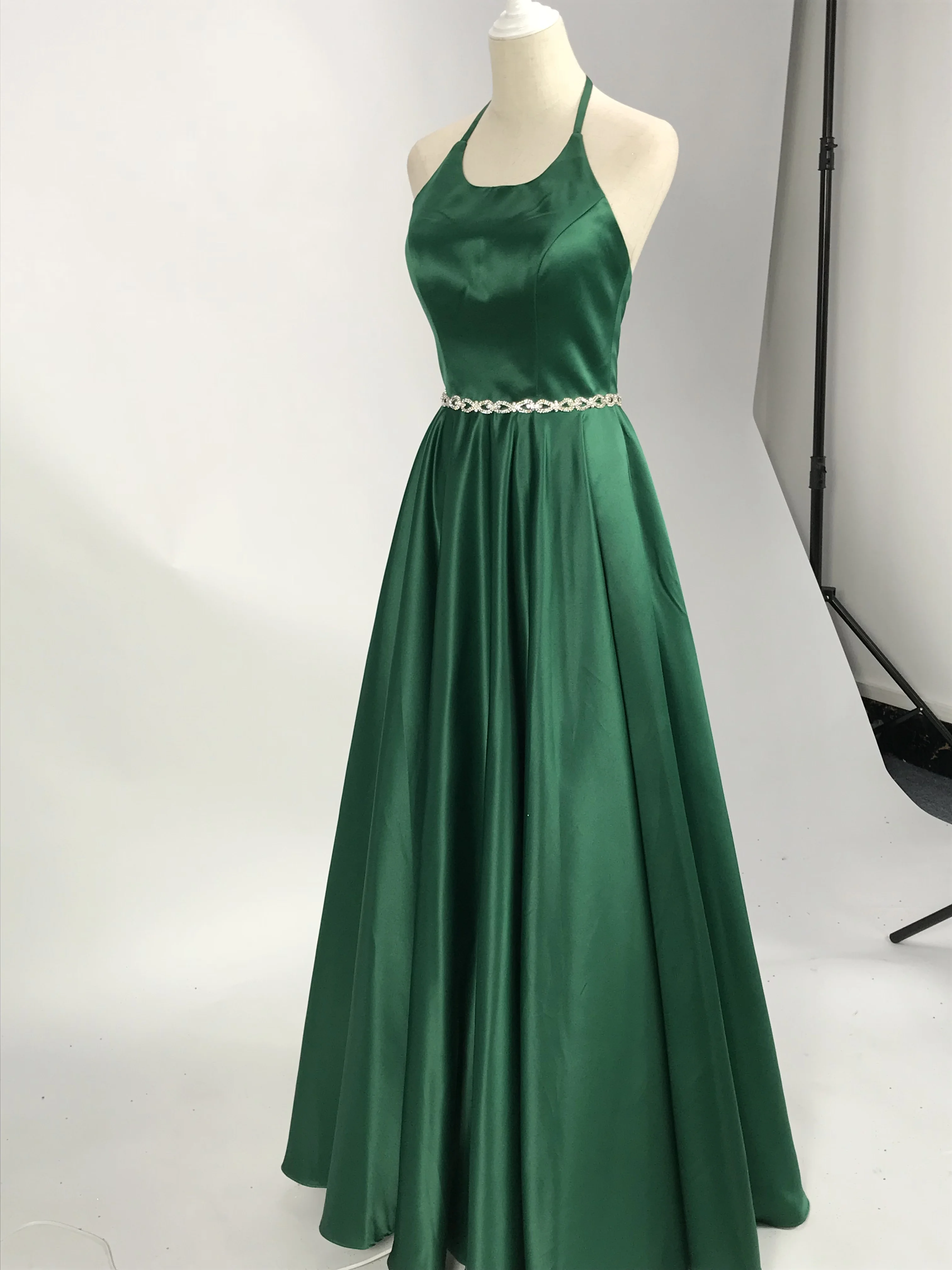 Modest Green Prom Dresses Long 2020 Real Photos Halter Open Back A