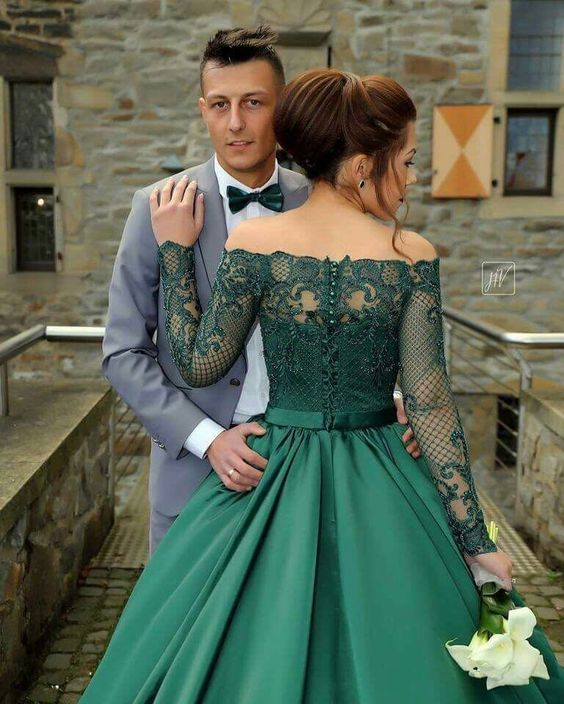 Modest Dark Green Party Dress Off The Shoulder Prom Dresses Prom