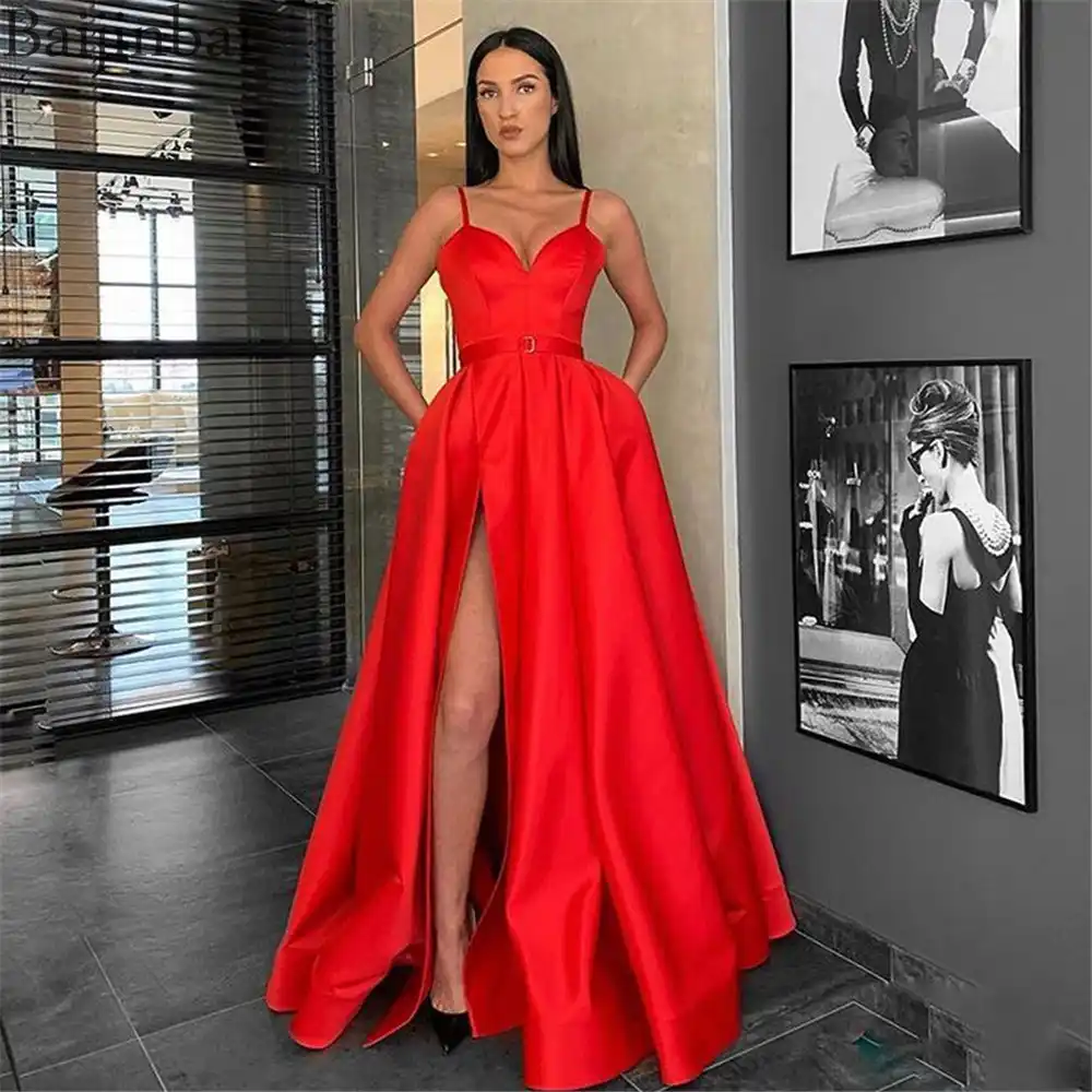 Baijinbai 2020 Latest Red Prom Dresses With Slit Spaghetti Straps