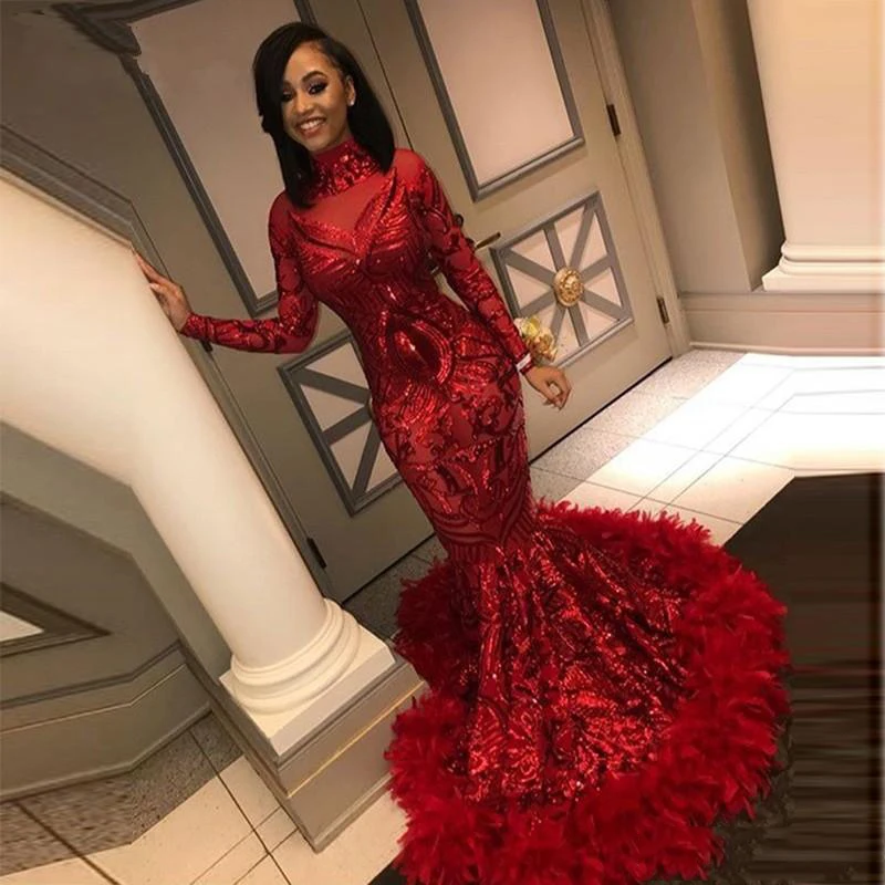 Online Shop Sparkly Red Mermaid Evening Dresses 2020 Sequined With