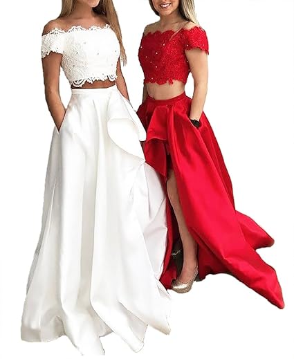 Two Pieces Prom Dresses 2020 Off The Shoulder Short Sleeve Ruffle