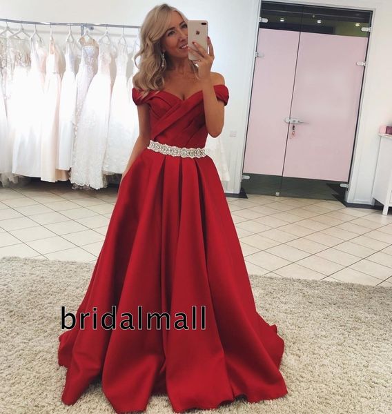 Gorgeous Off The Shoulder Red Ball Gown Long Prom Dresses 2020
