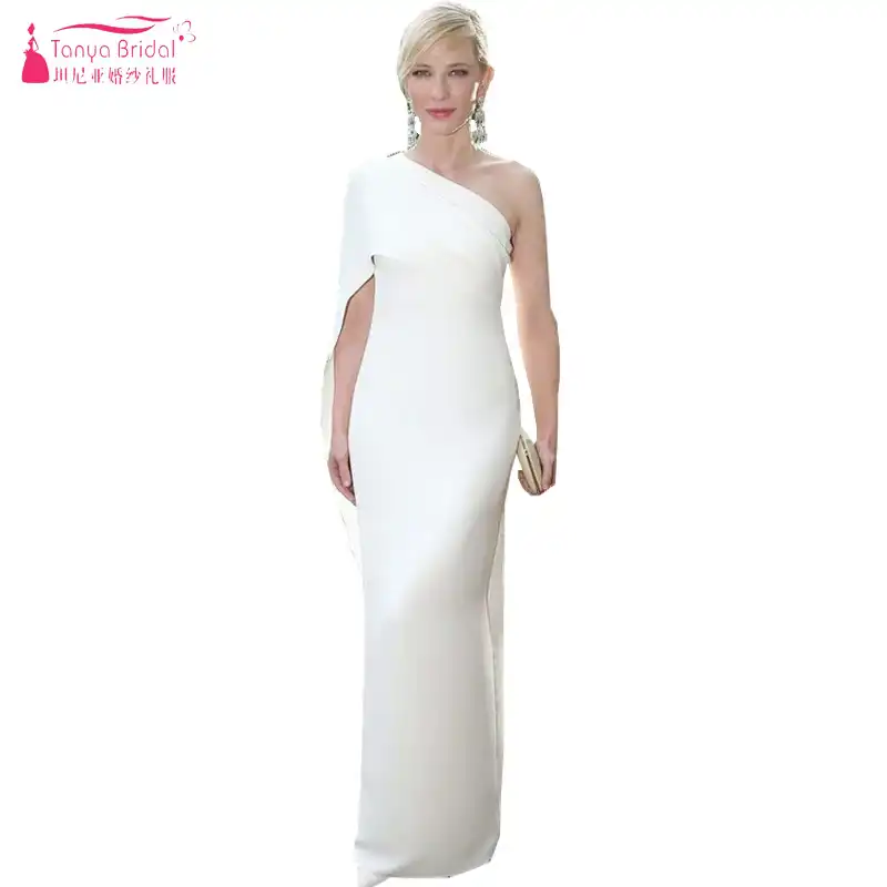 White Long Elegant Indian Prom Dresses One Shoulder Simple Evening