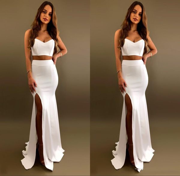 Simple White Long Prom Dresses Sexy Sweetheart Twopiece Evening