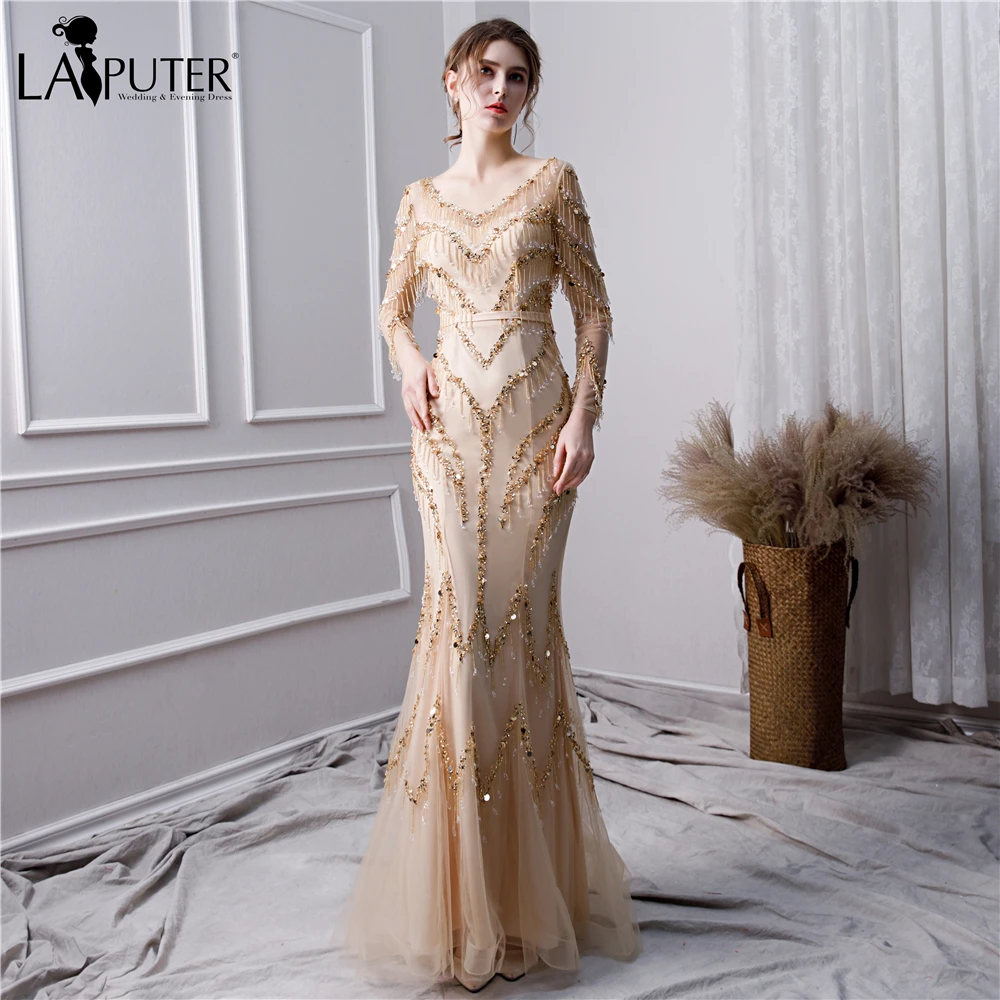Laiputer 2019 New Collection Prom Long Dress With Long Sleeves O