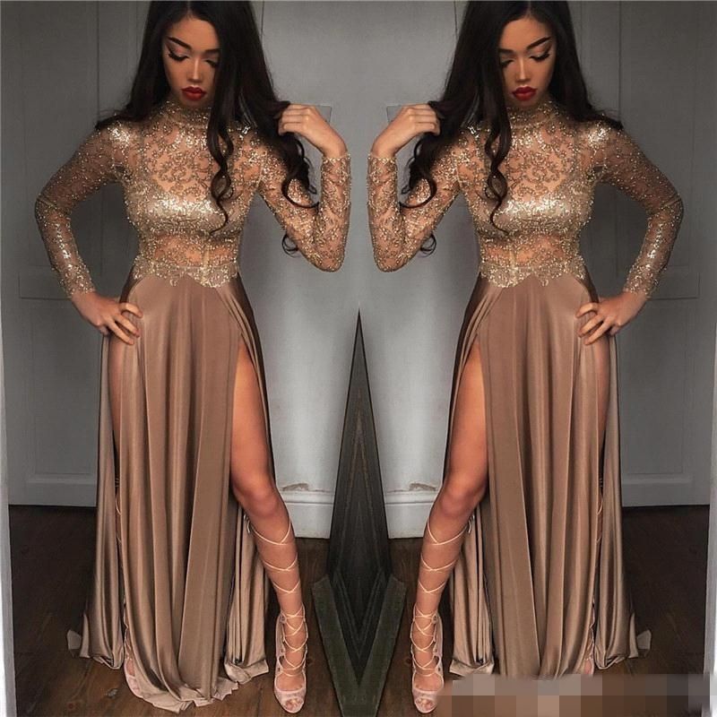 Champagne Long Sleeve Prom Dresses 2018 Fashion Dresses